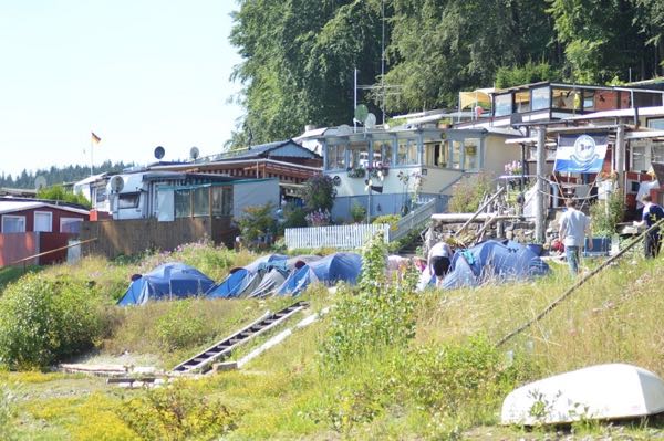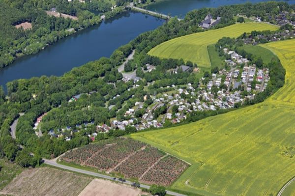 Stadtnah gelegener Campingplatz in Köln-Rodenkirchen am Rheinufer.